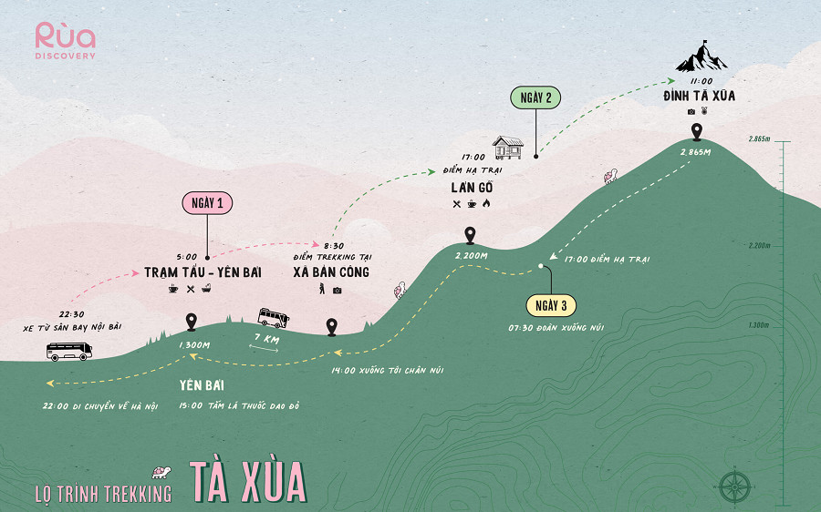 Hà Nội → Sơn Tây → Thu Cúc → Phù Yên → Bắc Yên → Tà Xùa