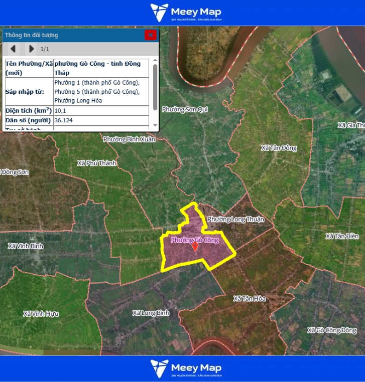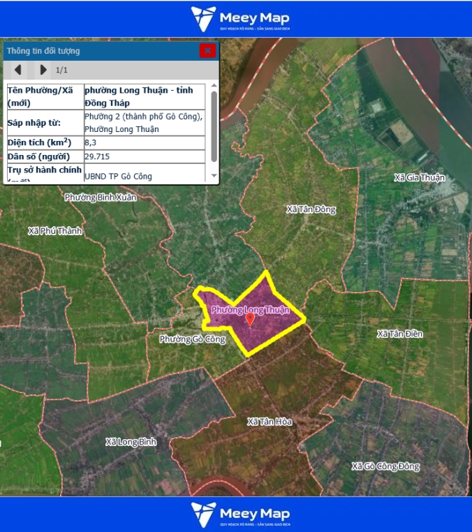 - Quá trình sáp nhập: Sáp nhập toàn bộ diện tích tự nhiên và quy mô dân số của phường Long Hưng, xã Tân Trung và xã Bình Đông (thuộc thành phố Gò Công cũ).